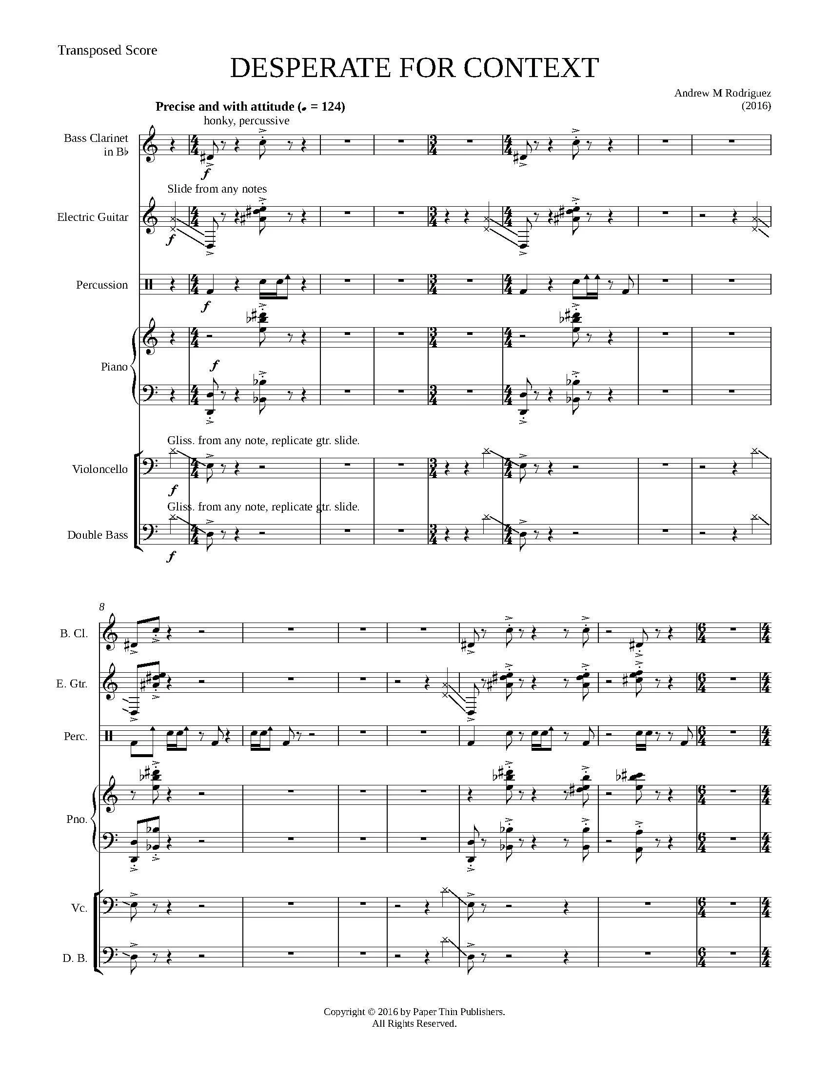 for Bass Clarinet, Electric Guitar, Percussion, Piano, Cello, and Double Bass